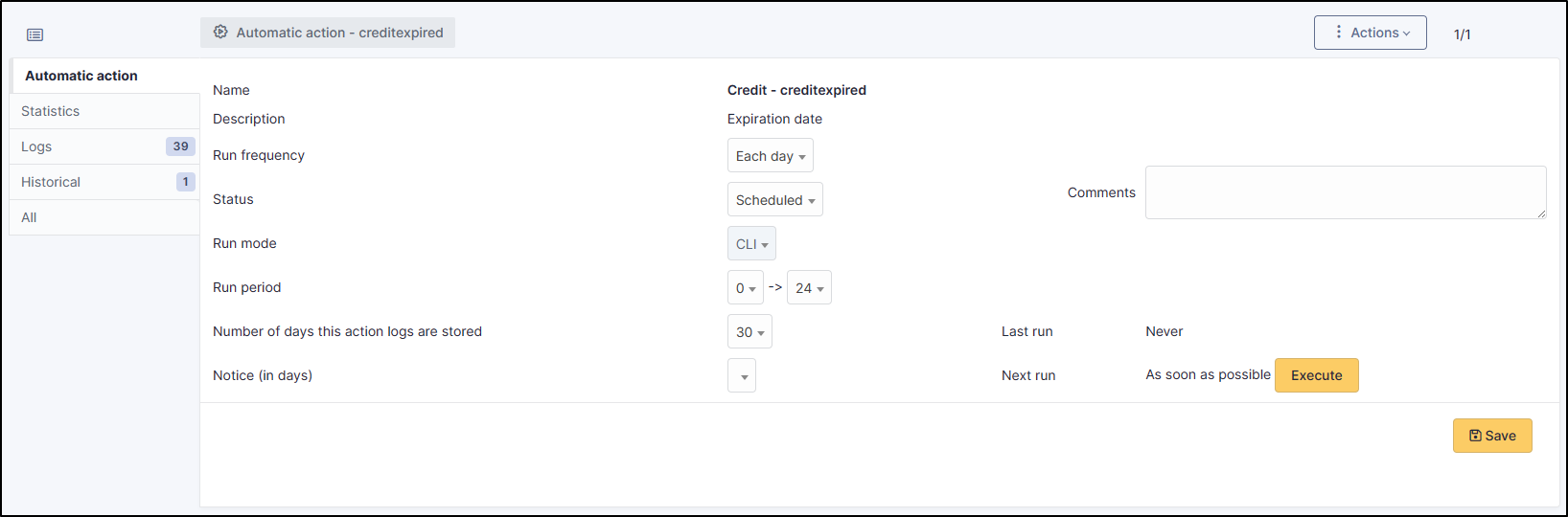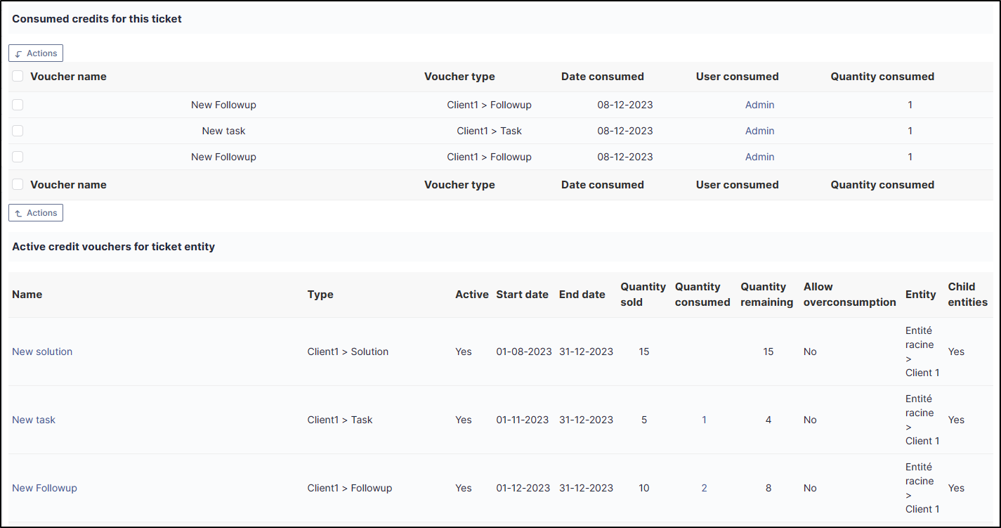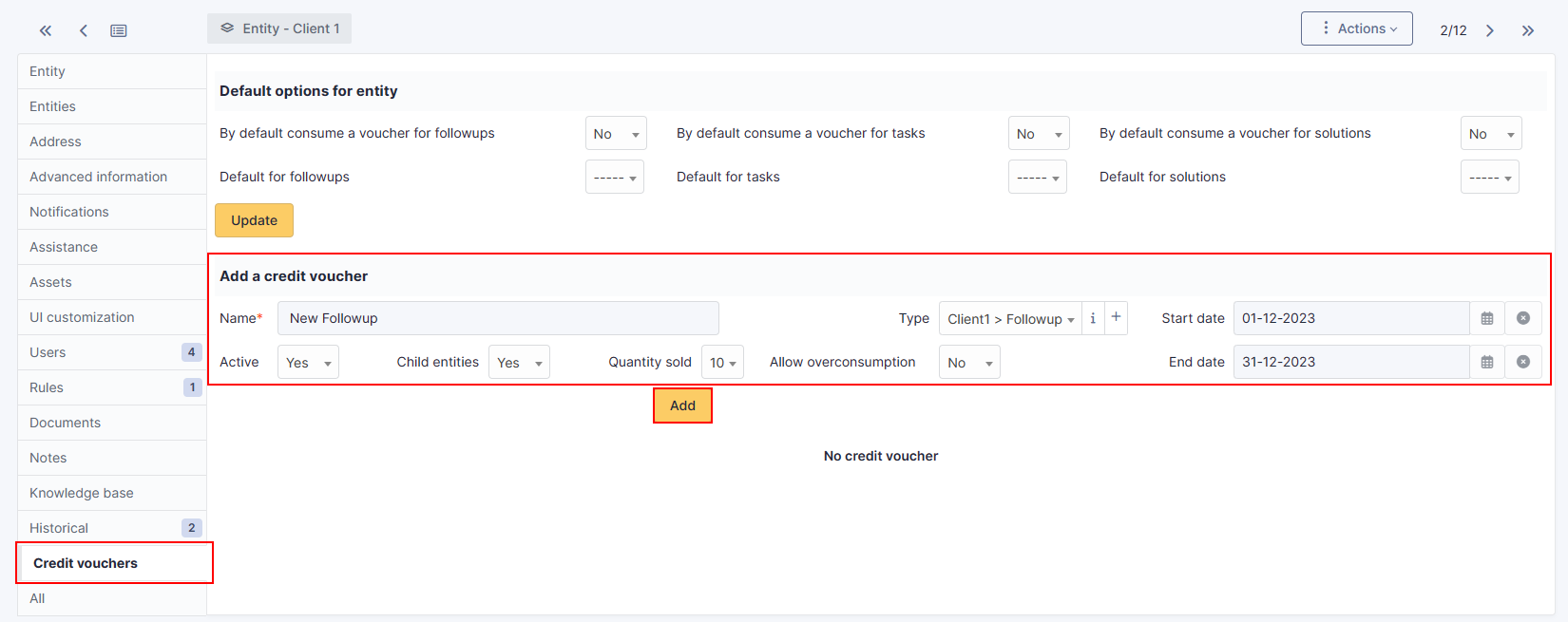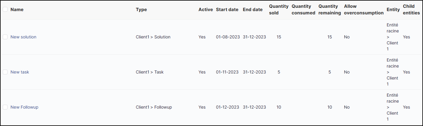 It is therefore possible to enter different values (number of credits, validity, overconsumption, etc.) for each credit: