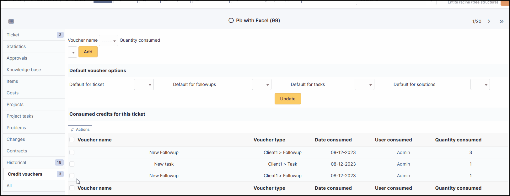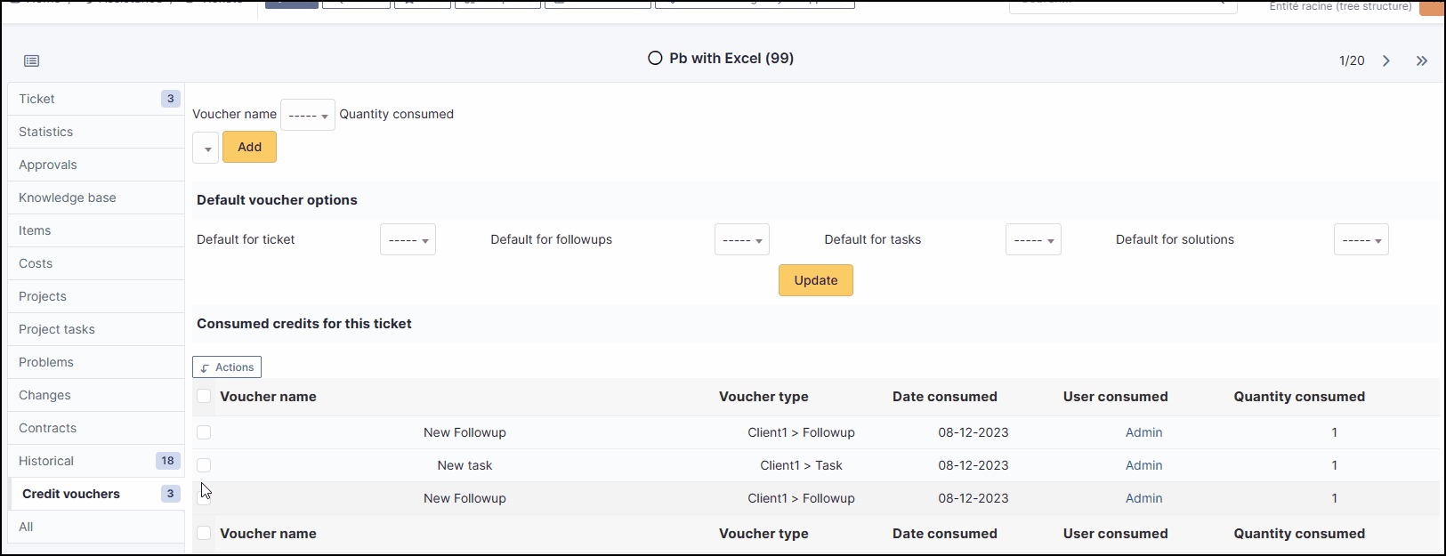 In the Credit section of the ticket you can see a summary of credits spent and remaining