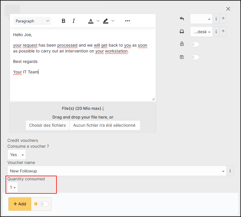 When a ticket is created, you can choose whether or not to deduct the corresponding credits.