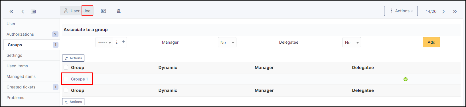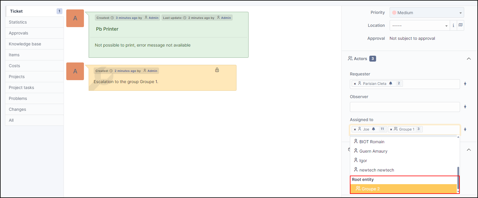 Joe user can only reassign ticket to Groupe 2 because it’s assign to Groupe 1