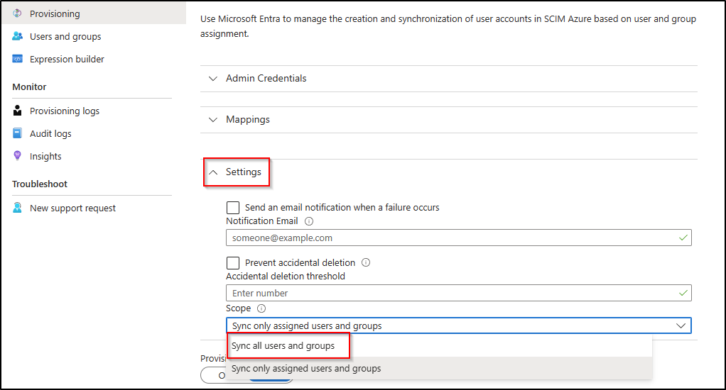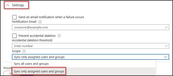 Select Synchronise assigned users and groups only