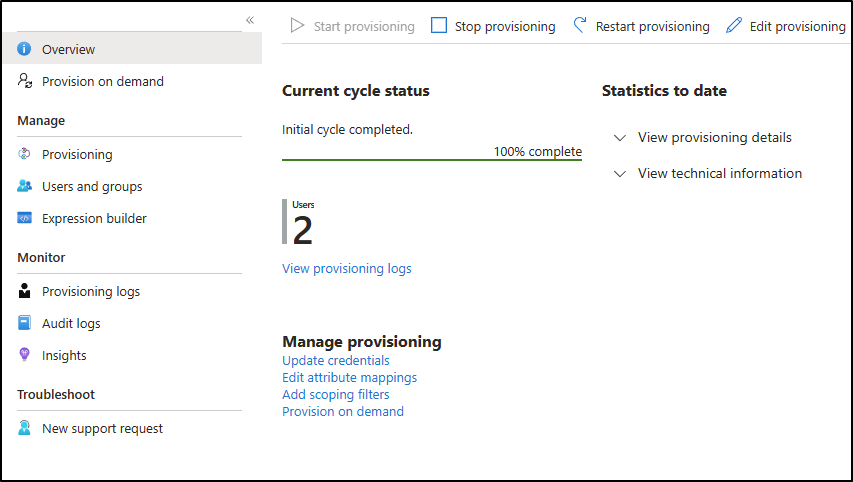 You can choose to synchronise only certain groups and/or users. When refreshing the `Provisionning` page