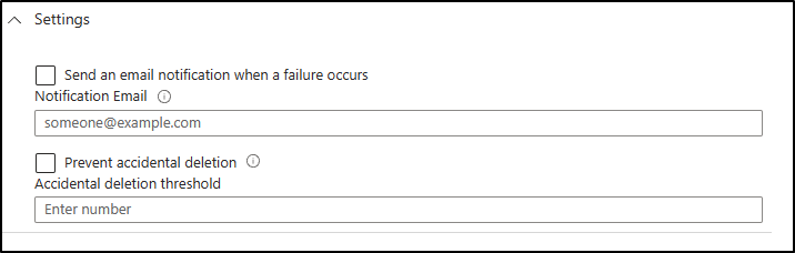 On the same page, you can also configure an email address and a number in case of failure or accidental deletions.