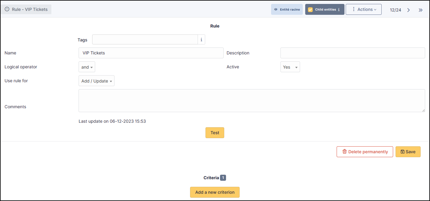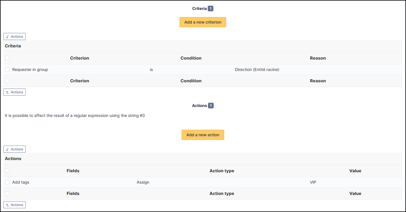 Example : Assign a VIP tag when a member of the management group writes a ticket.